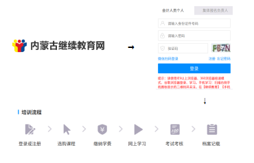 会计人员专业科目继续教育主要通过网络培训、现场培训和视同完成等方式完成。新冠肺炎疫情常态化防控期间,网络培训通过点击“内蒙古会计网”首页上“会计人员网上继续教育”进入。培训均需在培训完毕后按要求进行考试、考核,合格后方能完成记载学分。